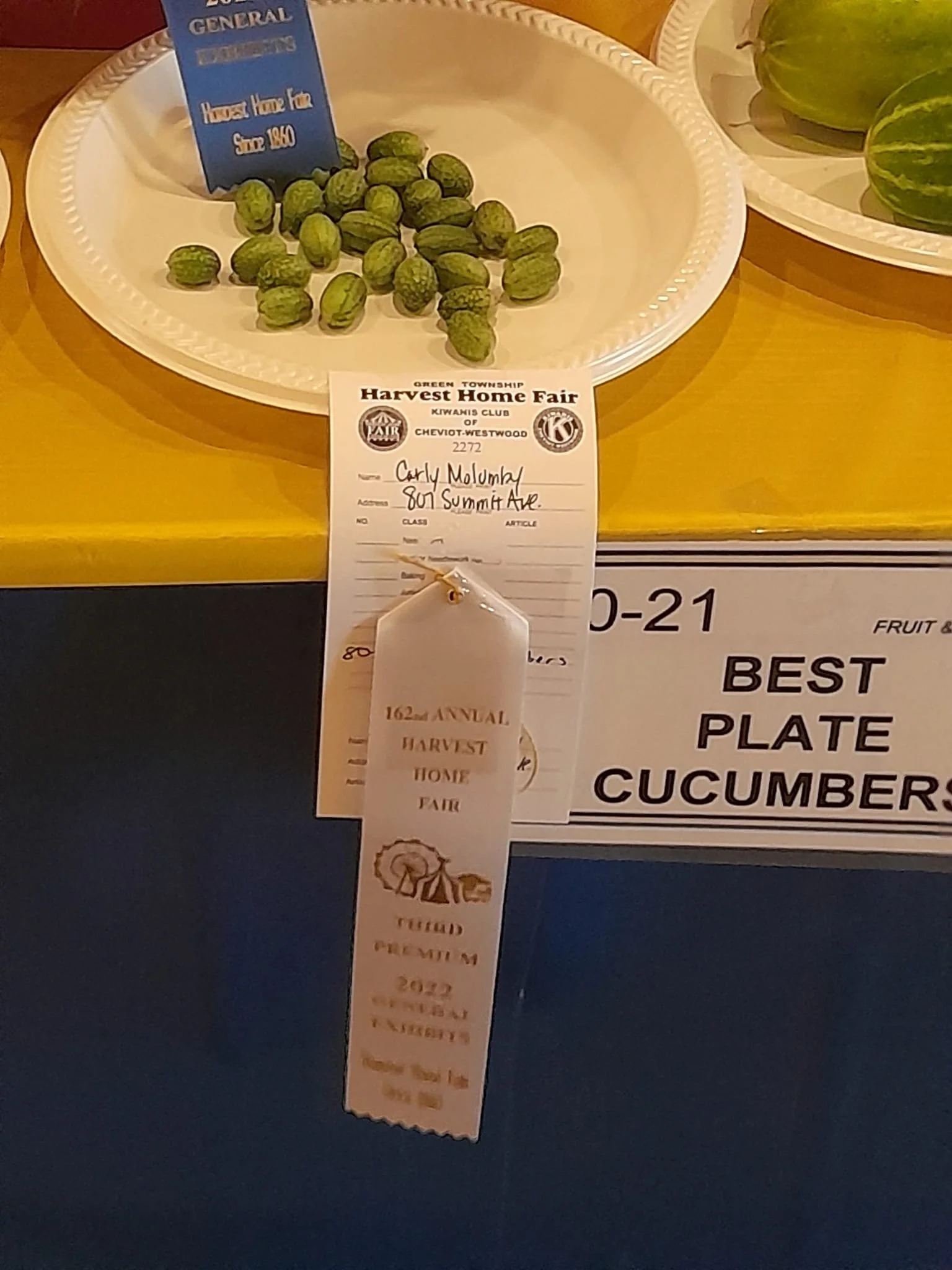 All of the ribbon entries that you see are from the annual Harvest Home Fair, located in Cheviot, Ohio since 1859